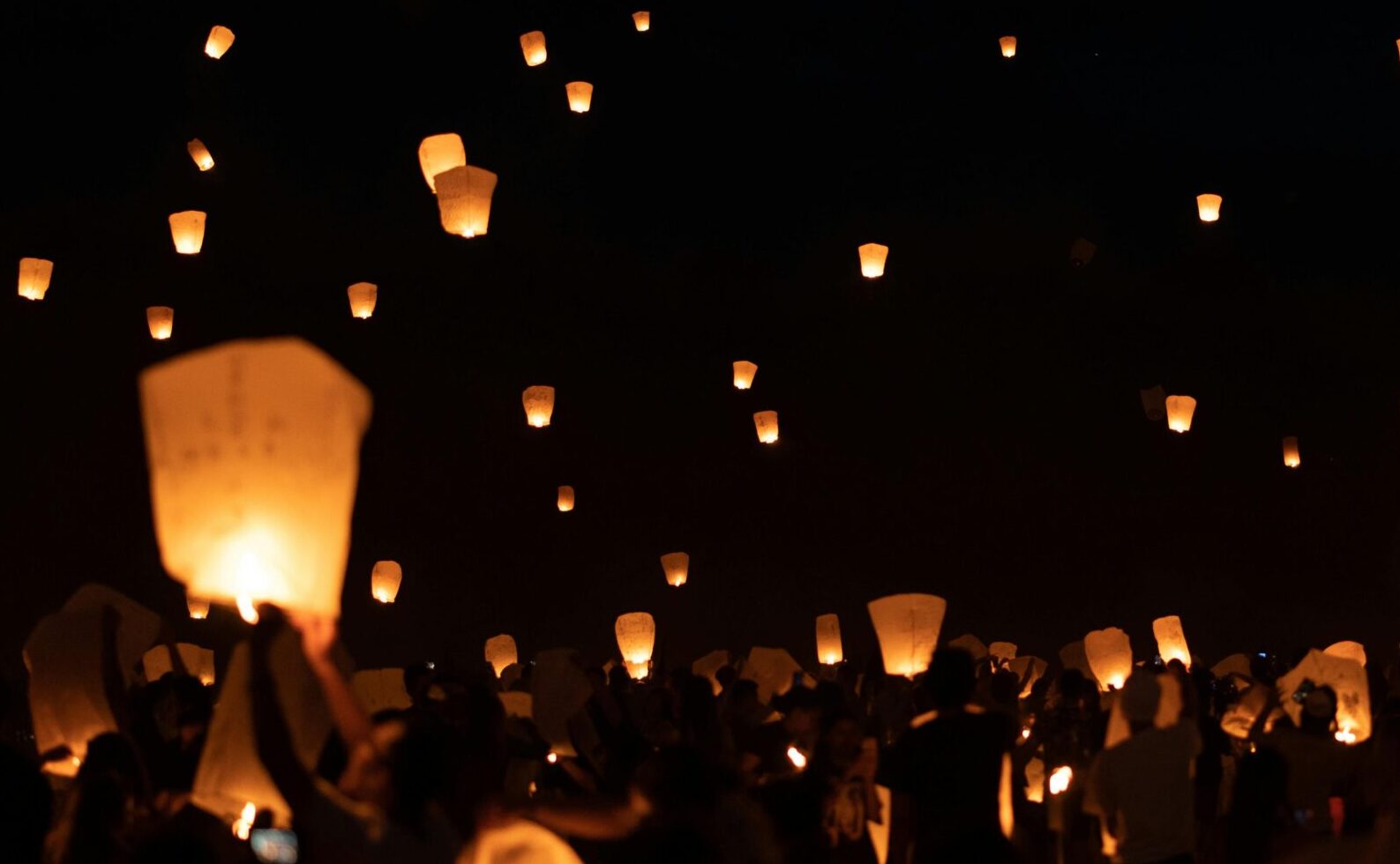As lanternas foram feitas à mão por crianças locais, que desenharam e escreveram nelas seus sonhos e desejos para o futuro. Quando o sol começou a se pôr, por volta das 18h, os participantes acenderam as velas, criando um espetáculo de luz suave e atmosfera acolhedora nas ruas e caminhos que levam aos templos.