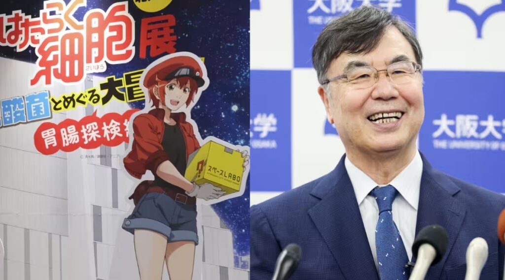 Em um gesto simbólico para o Nobel Museum, Sakaguchi fez uma doação incomum: cópias do popular mangá científico “Cells at Work!“ (Células em Ação).