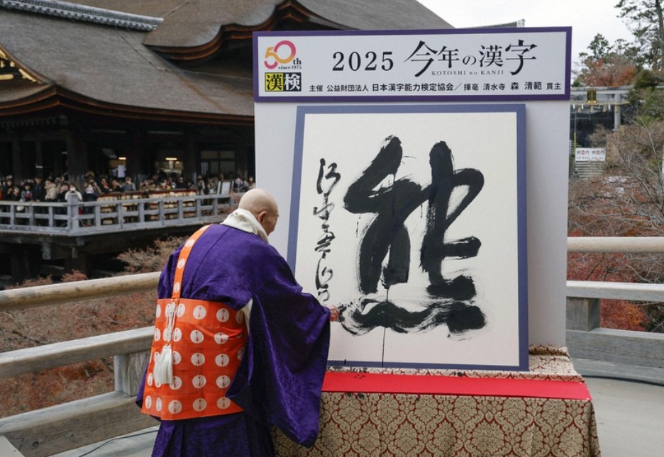 O ano de 2025 marcou o 30º aniversário da tradição do Kanji do Ano. O caractere desenhado permanecerá em exposição no salão principal do Templo Kiyomizudera até 22 de dezembro e, posteriormente, será exibido no Museu Kanji do Japão.