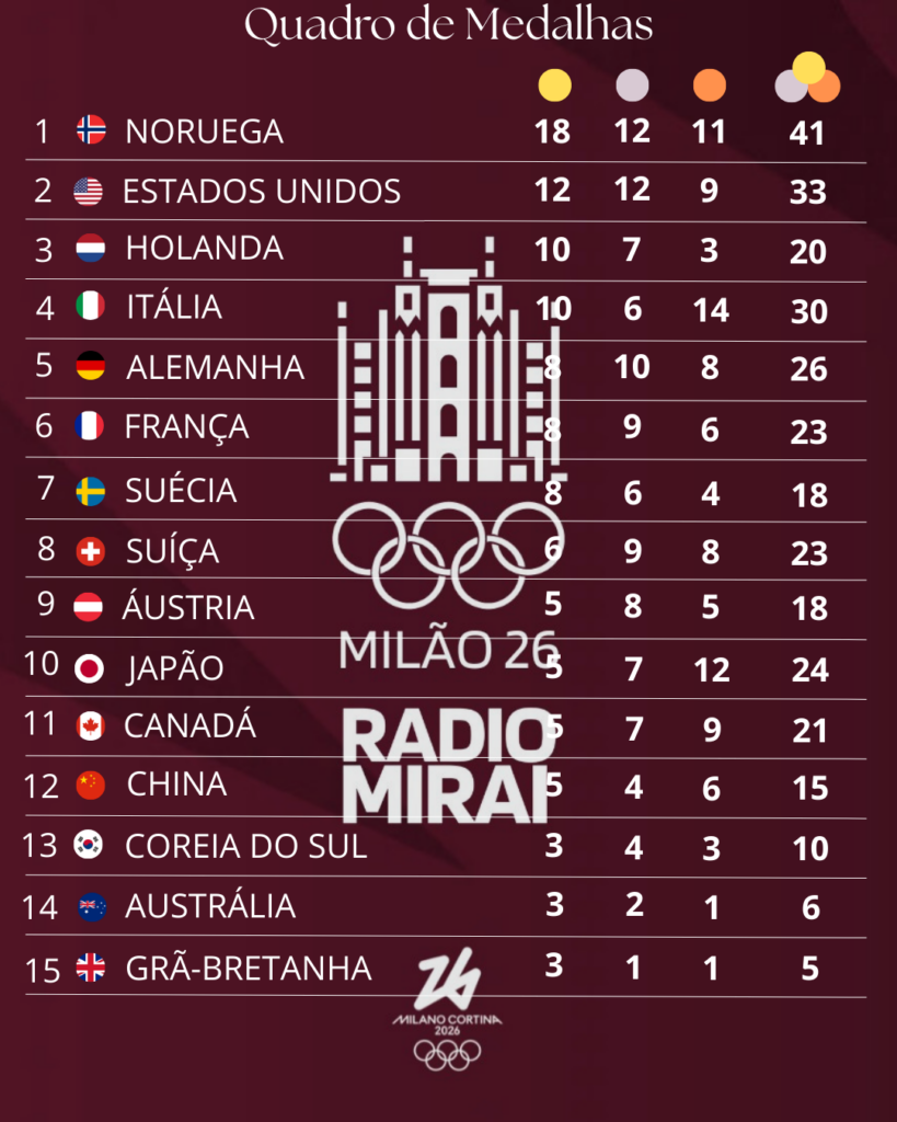 A Rádio Mirai apresentou a cobertura especial das Olimpíadas de Inverno e destacou um momento histórico para o esporte brasileiro. O Brasil conquistou sua primeira medalha de ouro na história da competição, um feito inédito que gerou comemoração entre atletas e torcedores.