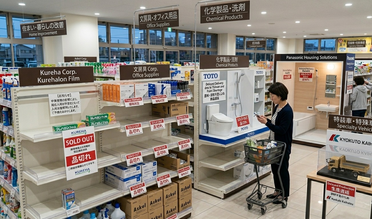 Um dos sinais mais dramáticos da crise veio do setor de construção. A Toto Ltd., maior fabricante de equipamentos sanitários, anunciou a suspensão total de novos pedidos para seus banheiros modulares. A empresa alegou que não consegue obter os solventes orgânicos necessários para a fabricação dos adesivos usados em paredes e tetos.